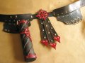 Pas już nie jest tylko pasem ale naprawdę solidnym dodatkiem do stroju. Posiada taszki opadające na biodra, zwisy ozdobne na wysokości krocza i mnóstwo kółek do mocowania
