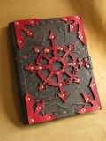 Takoż samo zęby, całkowicie skórzane - wystylizowane na pożółkłe od próchnicy. Przy grzbiecie zamocowane dwie runiczne zakładki by wpisane zaklęcia łatwiej było znaleźć.