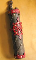 Ta z kolei wykonana na czyjejś samoróbce ze stali nierdzewnej. Ale wdzianko ze skóry zrobione przeze mnie już na stałe. Znacznie zdobniejsze i droższe.