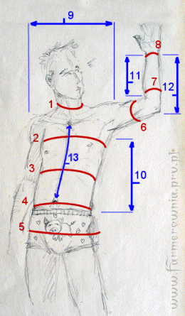 - 11. długość przedramienia po wewnętrznej (mierzyć na zgiętej ręce)