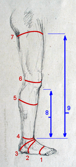 - 3. obwód w najszerszym miejscu pięty (na zgiętej stopie, tak by wymiar był jak największy).